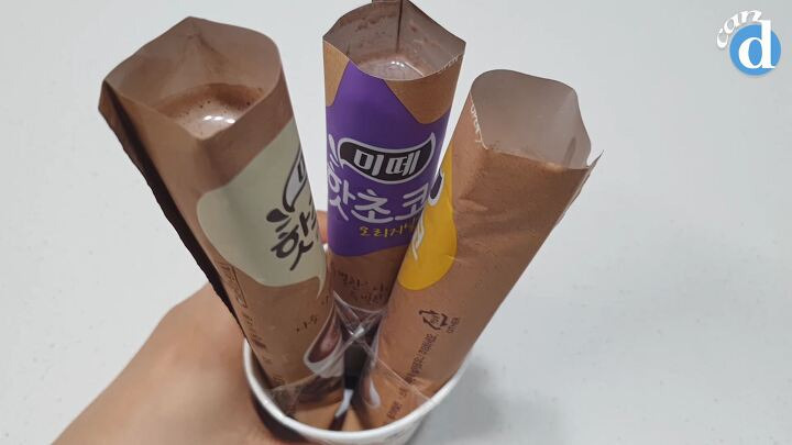 종이컵을 테이프로 4분할해주면 미떼 스틱이 쏙!