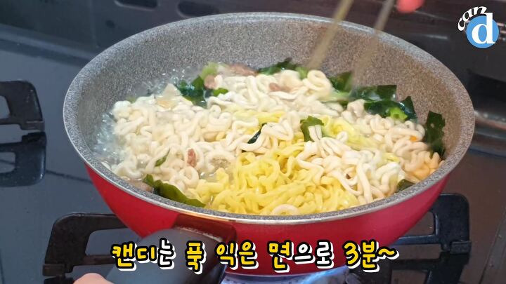 캔디는 푹 익은 면으로 3분간 끓였습니다.