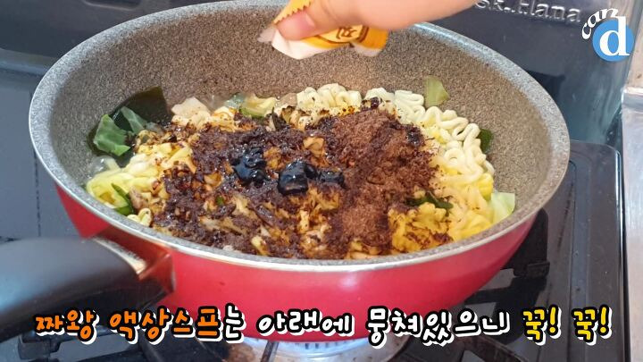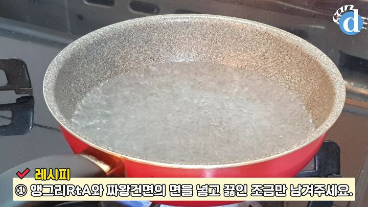 먼저 앵그리RtA와 짜왕 면을 넣고 끓여주세요.