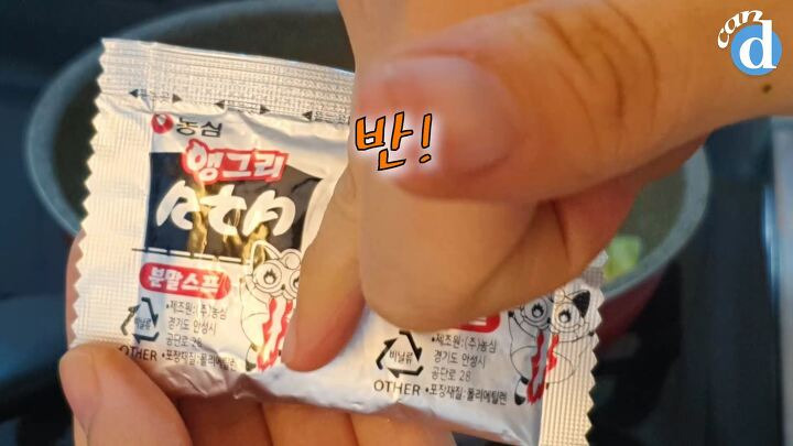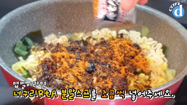 두 라면의 후레이크도 아낌없이 몽땅 넣어주세요.
