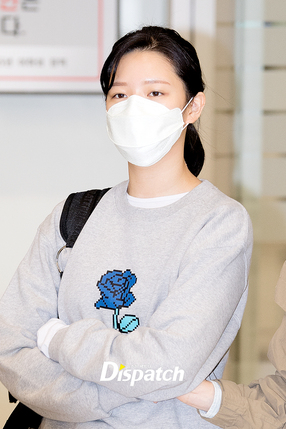 '트와이스' 정연은 이날 수수한 패션으로 입국장에 들어섰다. 마스크로 얼굴을 가렸지만 청순한 미모가 돋보였다.