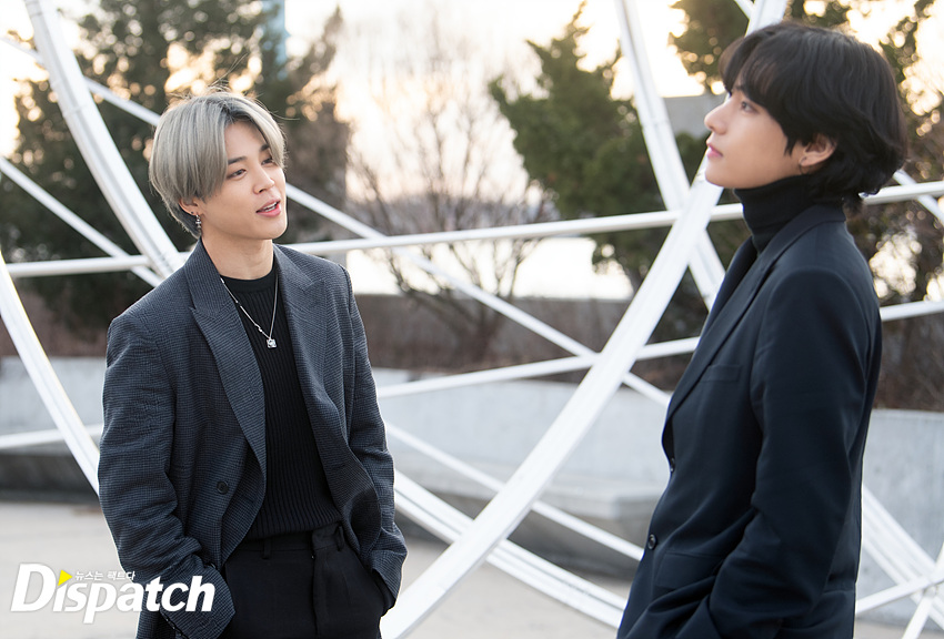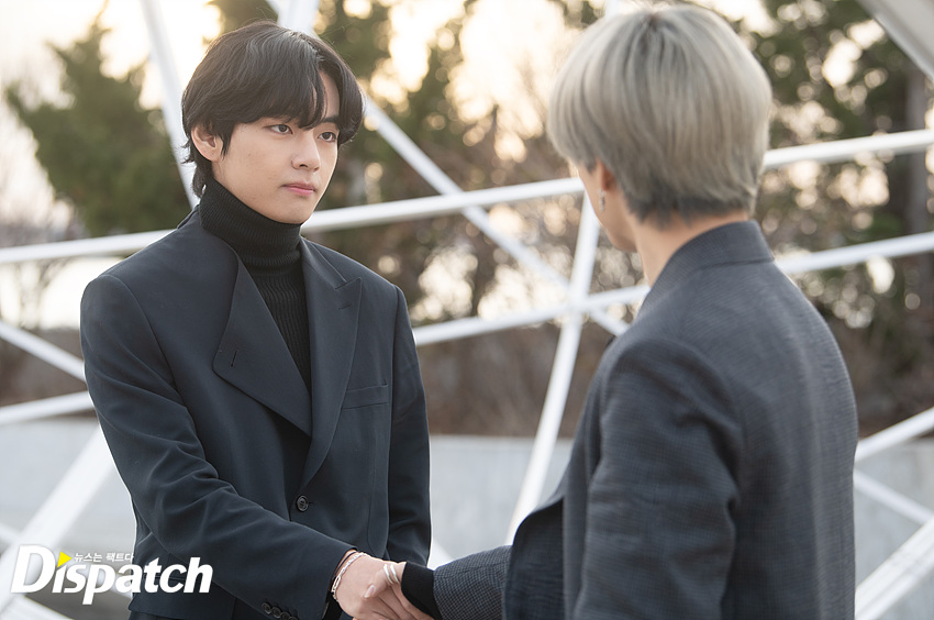 뷔와 지민은 상황극을 설정했습니다. 서로 모르는 척 길을 걷다가 악수를 했는데요. 아미들이 이 공간에서만큼은 성별, 나이, 국적 불문 서로 친구가 되길 바란다고 전했습니다.
