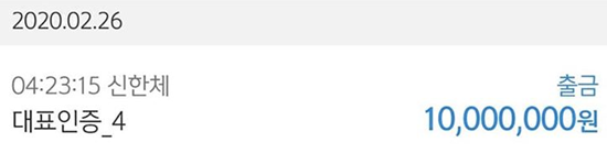 선미는 26일 자신의 인스타그램을 통해 희망브리지 재회 구호협회에 기부한 통장 내역을 공개했다. 금일 1,000만 원을 전달했다.