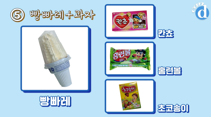 캔디는 아이스크림 5종 과자 9개를 준비했어요.