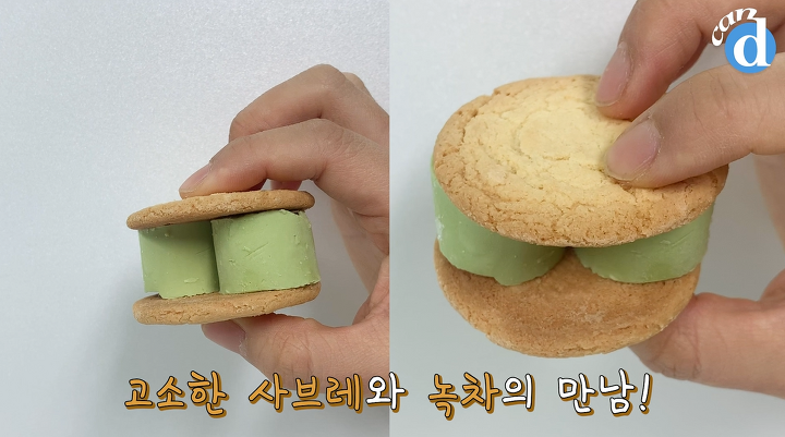 사브레 안에는 녹차 아이스크림 슬라이스 2개 추가!