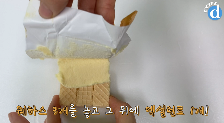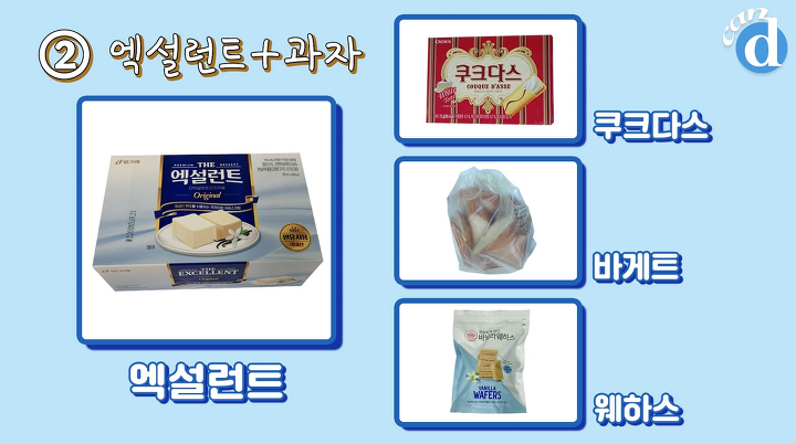 쿠크다스를 반으로 자른 뒤 엑셀런트를 사이에 끼워주면 끝!