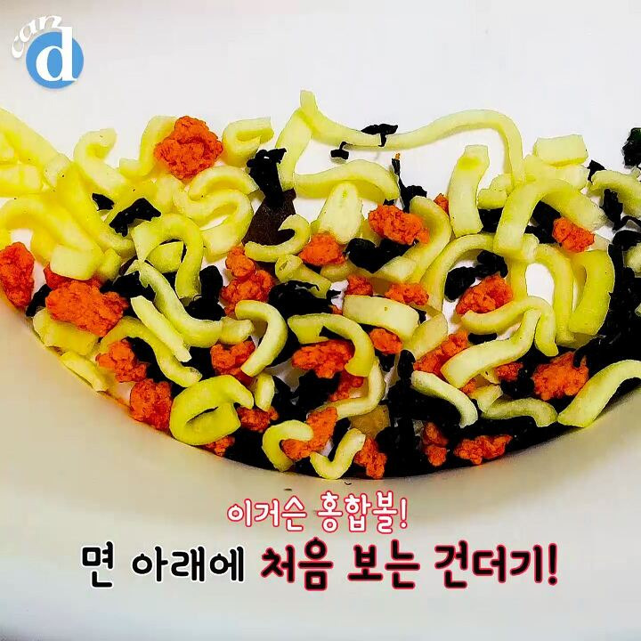 면 아래엔 처음 보는 건더기가 눈에 띄었어요.