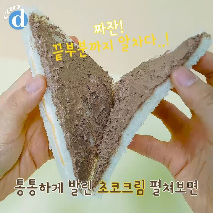 초코크림과 크림치즈가 매끈하게 발려있는 샌드위치.