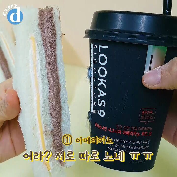 샌드위치와 아메리카노를 한 입 먹는 순간!