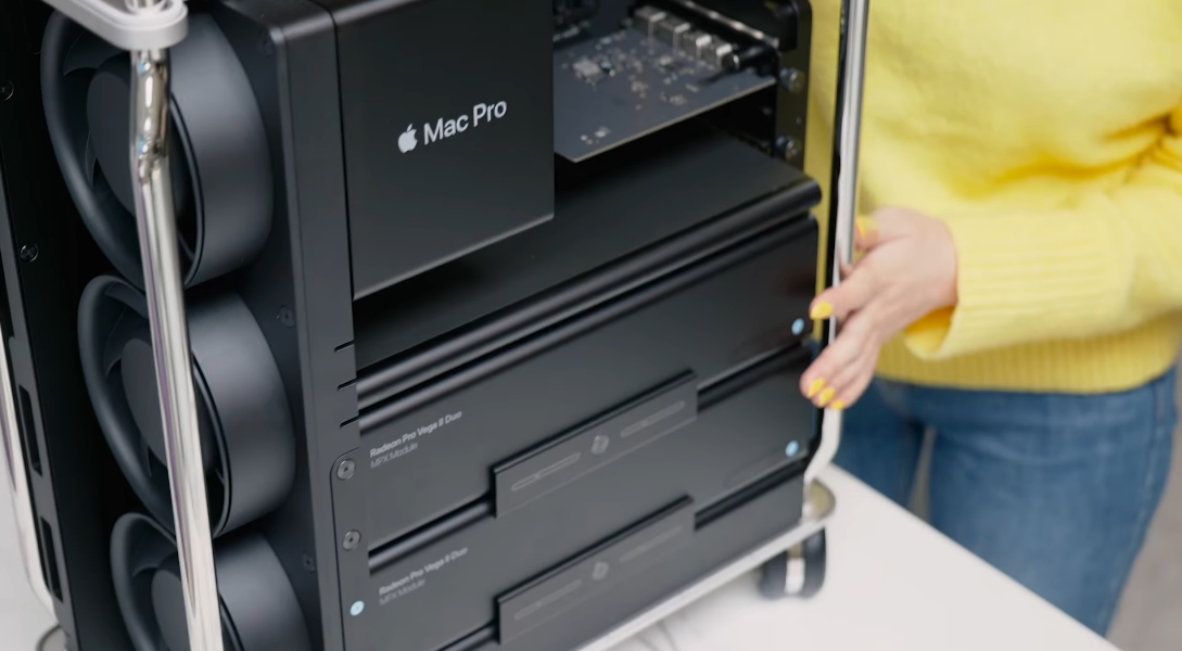 또 그래픽카드 라데온 프로 베가2 듀오 2개, 저장공간 4TB, 애프터버너 카드가 있고 바퀴도 있는데요.