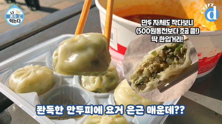 라면만 호로록하다 보니 만두를 잊을 뻔했어요.