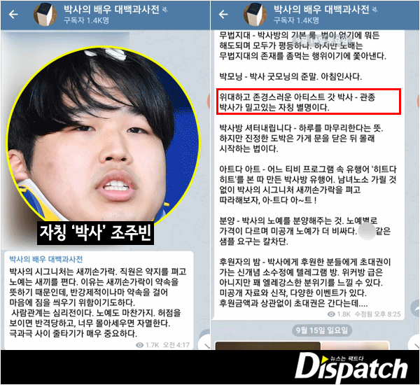 '디스패치'는 조주빈이 직접 작성한 일대기(?) '허풍전'과 범죄 기록 '대백과사전'을 입수했다. 조주빈은 중2병 감성의 허세로 글을 써 내려갔다.