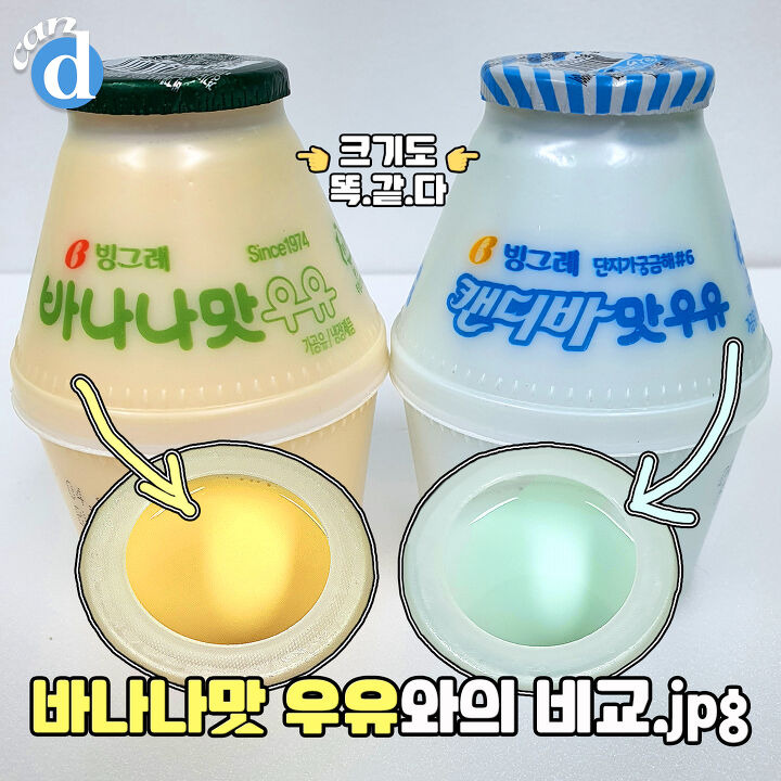 다만, 칼로리는 달라요. 바나나맛은 208칼로리, 캔디바맛은 196칼로리.