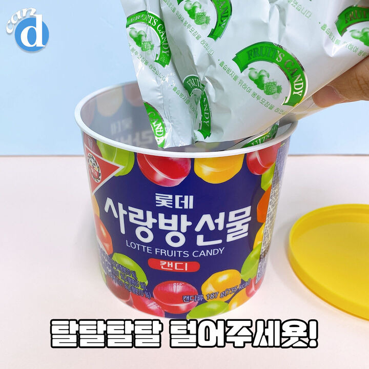본명(?)은 사랑방 선물이지만 사랑방 캔디로도 불리죠! 다 먹고 잡동사니를 보관하는 통으로 사용했던 기억이 있어요.