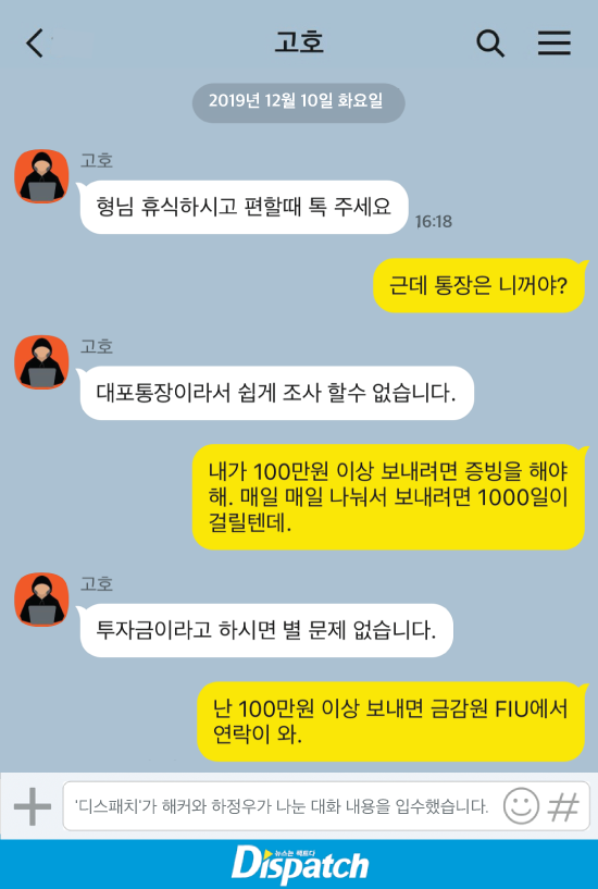 하정우 : 나는 100만 원 이상을 송금하면 금감원 FIU에서 연락이 오거든.