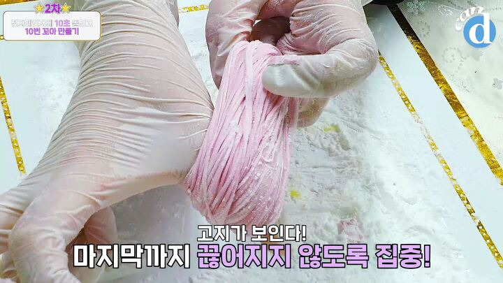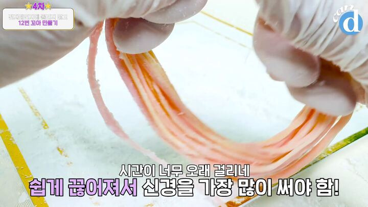 전분가루를 묻혀가며 한 번씩 꼬아주면 돼요.