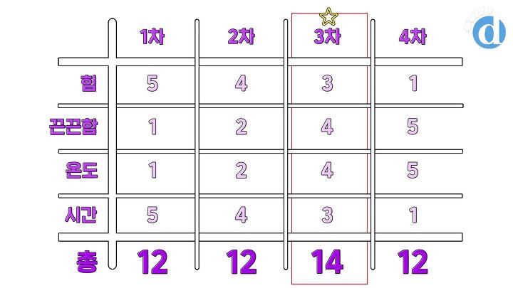 최상의 조건을 찾기 위해 4차로 진행했어요.
