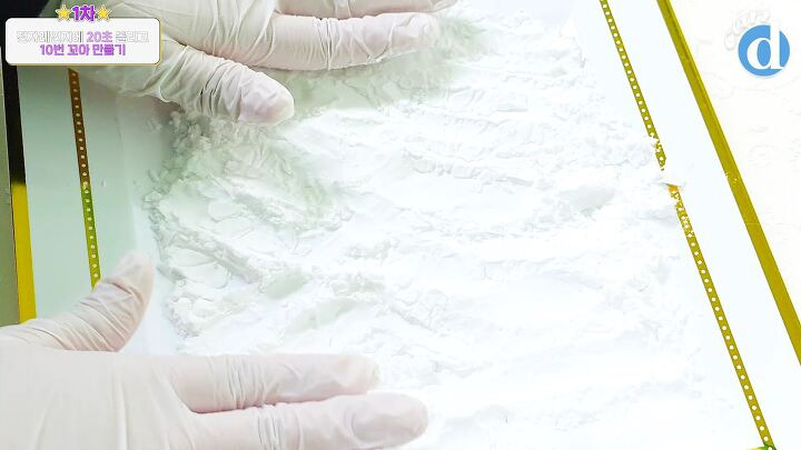 쟁반에 전분가루를 골고루 뿌려주었어요.