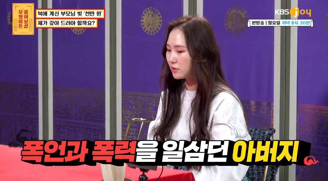 의뢰인은 "아빠가 많이 폭력적이어서, 그게 싫어 집을 나왔는데 저도 부모가 되다 보니 많이 용서하려 마음 속으로 노력했다"며 "탈북 후 연락이 닿았는데, 여전히 폭언을 한다. 돈 얘기 꺼낸 것도 아빠"라며 눈물을 흘렸습니다.