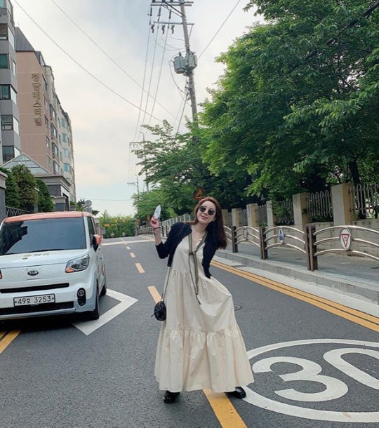 서인영은 이날 일상 사진을 팬들에게 공개했습니다. 아이보리 컬러의 롱 원피스에 검은색 가디건을 입고 있었죠.