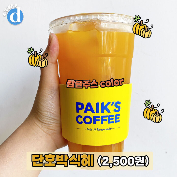 단호박식혜는 은은한 달짝지근한 맛이 매력. 일반 식혜였다면 달달한 맛 하나였겠지만 단호박 특유의 향이랑 같이 즐기니깐 더욱 맛났어요. 2,500원으로 갈증 뿌시기! 성~공!