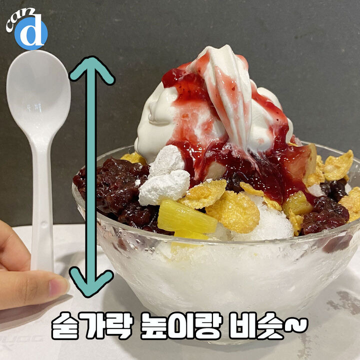 빙수 주문시 나눠주는 숟가락과 높이를 비교해봤어요. 비슷하면서도 살짝 더 높았는데요. 약 12cm 정도였어요.