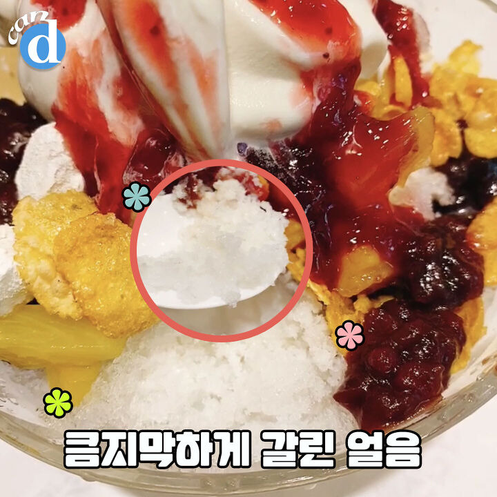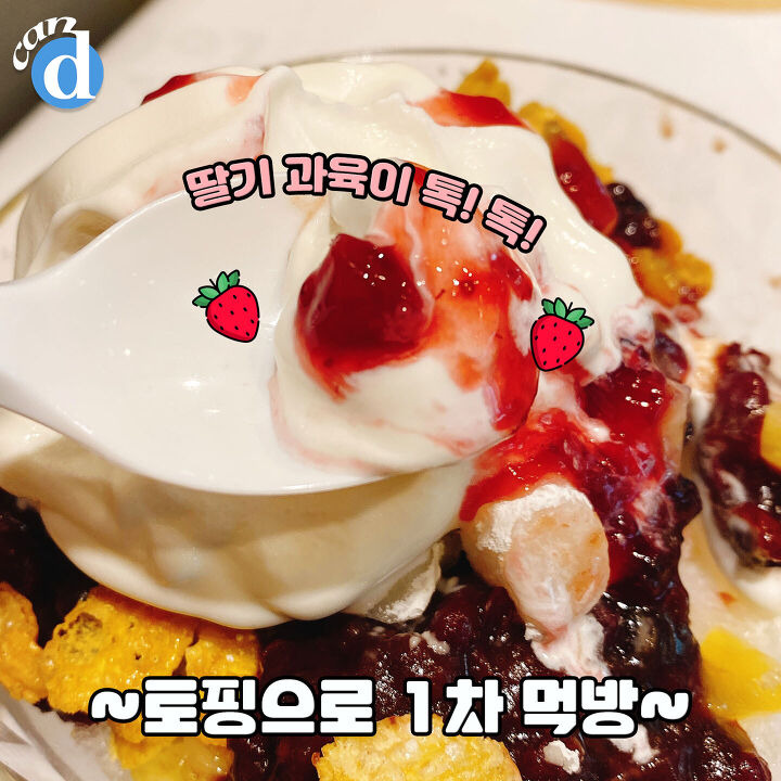 토핑만 주워먹는데도 햄벅스...★ 쫄깃한 떡에 말캉말캉한 후르츠, 바삭한 시리얼에 입에서 살살 녹는 아이스크림까지! 한입에 앙~ 넣으면 입안에서 식감파티가 열린다구요~