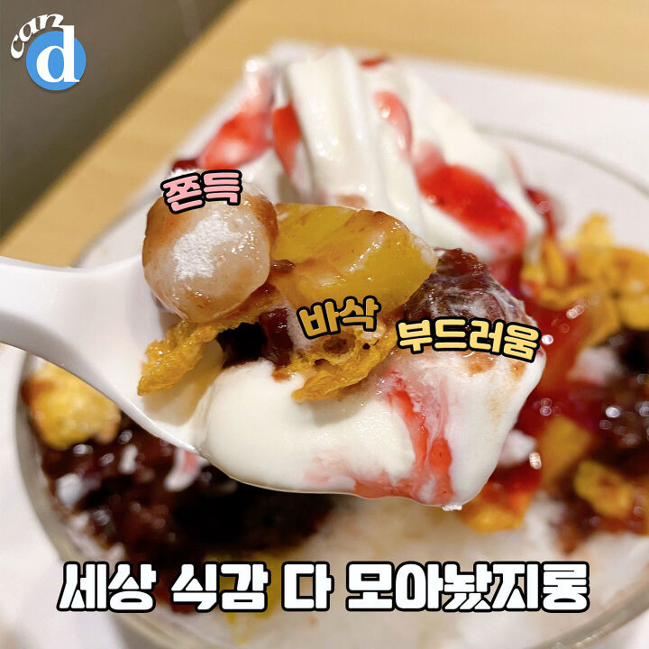 부담없이 고를 수 있는 가격에 딱 먹기 좋게 달달한 빙수. 다양한 토핑들의 제각기 식감도 매력적!