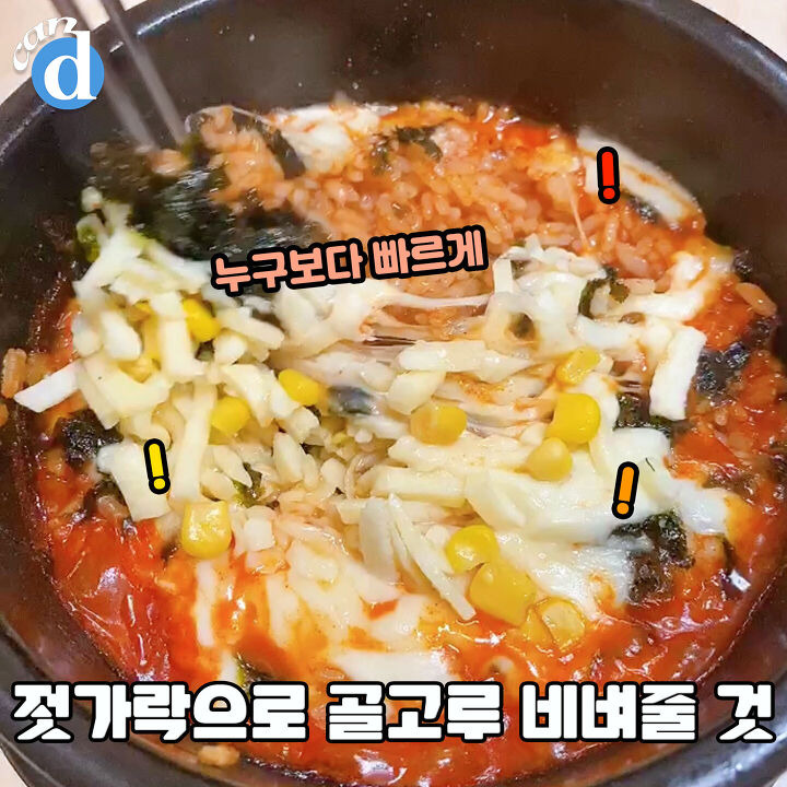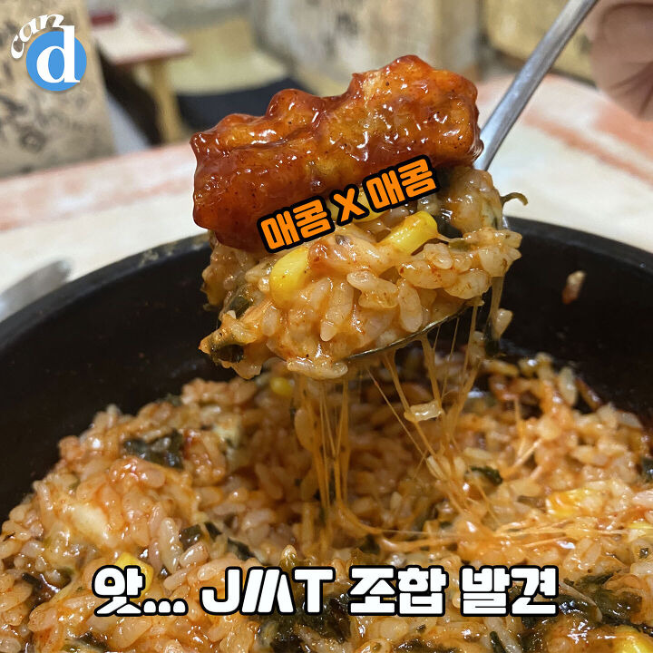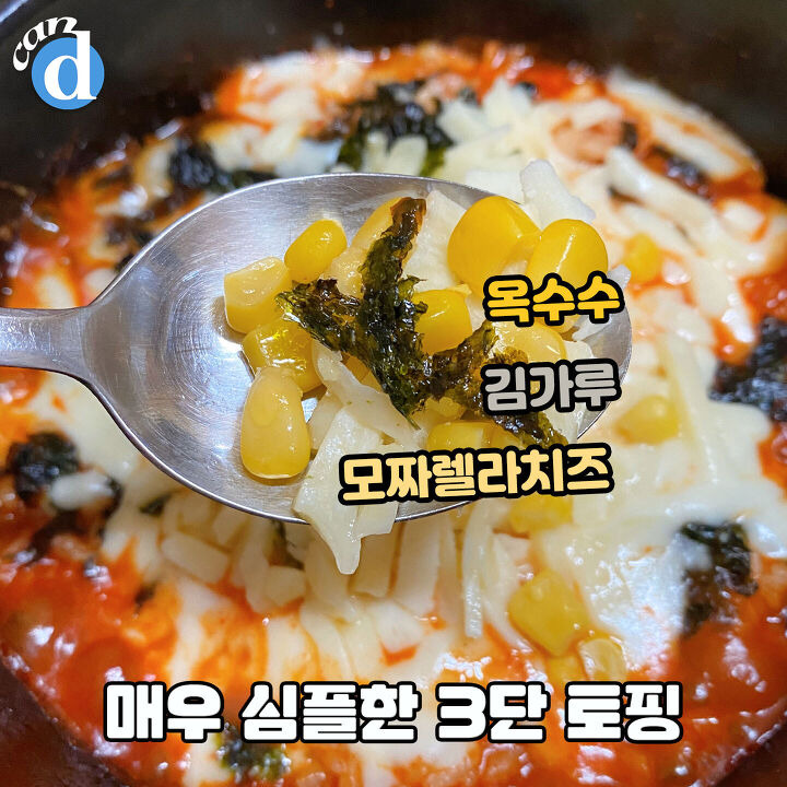 진한 빨강색 양념으로 버무려진 치즈밥. 어딘가 익숙한 듯 싶지만 또 새로운 맛!