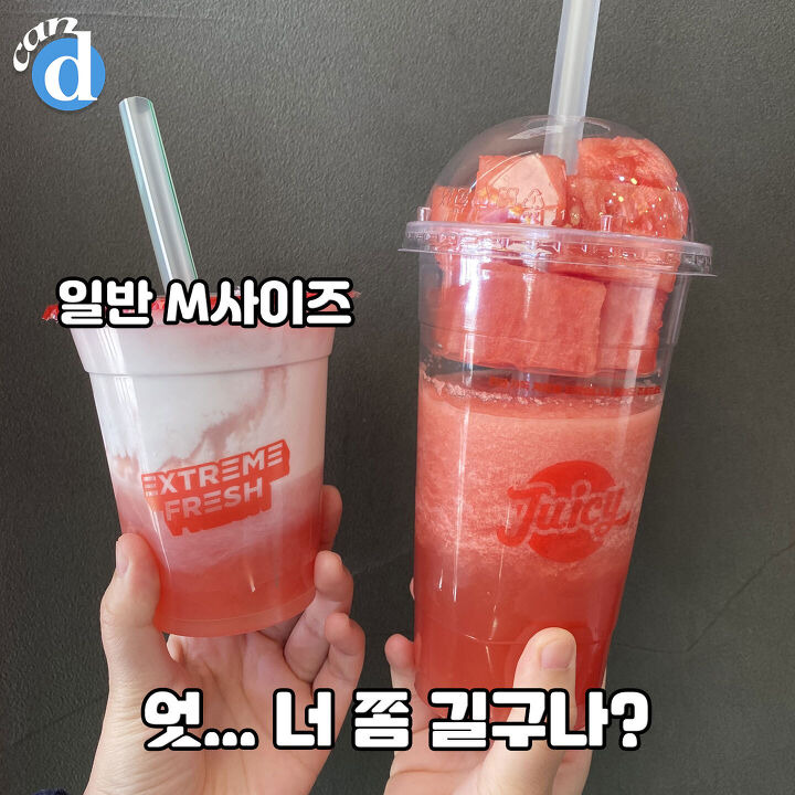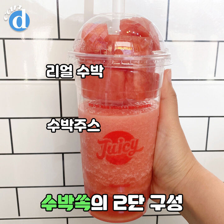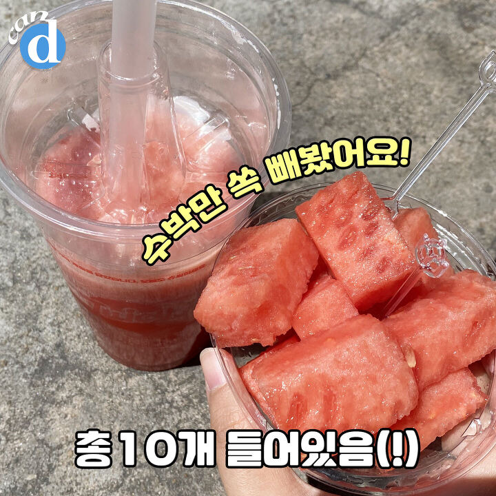 수박주스를 마실 때 수박이랑 섞이지 않도록 컵 안에서 따로 분리가 되어 있어요!
