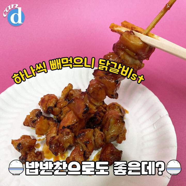 1개당 약 650원이 좀 안 되는 가격인만큼 길거리에서 파는 커다란 닭꼬치를 기대하면 안돼요.