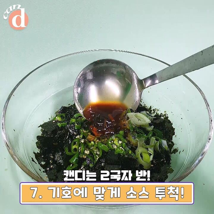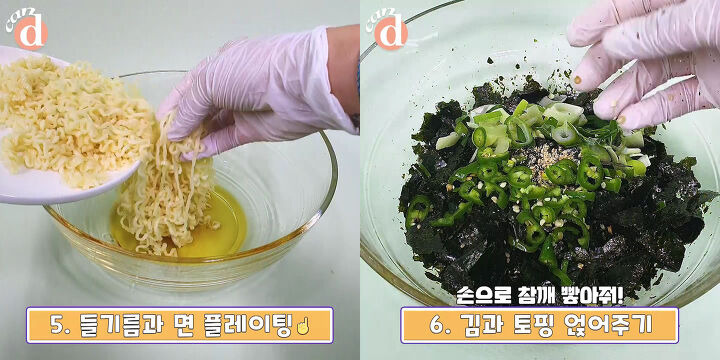 들기름을 뿌리고 김과 토핑을 얹어주면 되는데요.