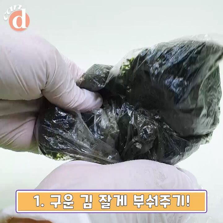 김을 봉지에 넣고 열심히 주물주물~