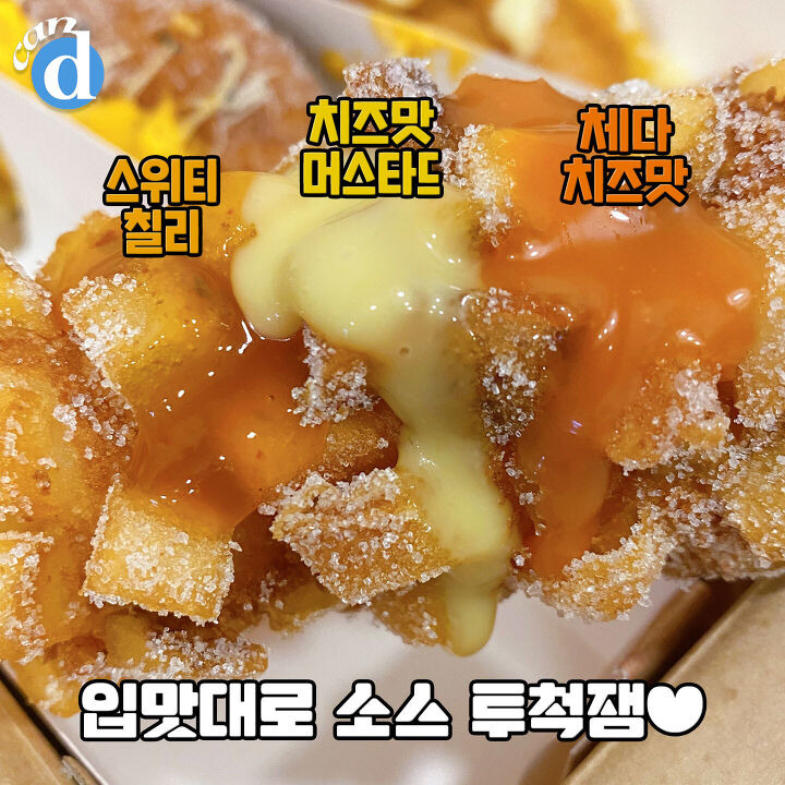 마치 일반 치즈볼을 설탕에 한바퀴 굴려 먹는 맛. 계속 먹어도 의외로 느끼하지도 않구요!
