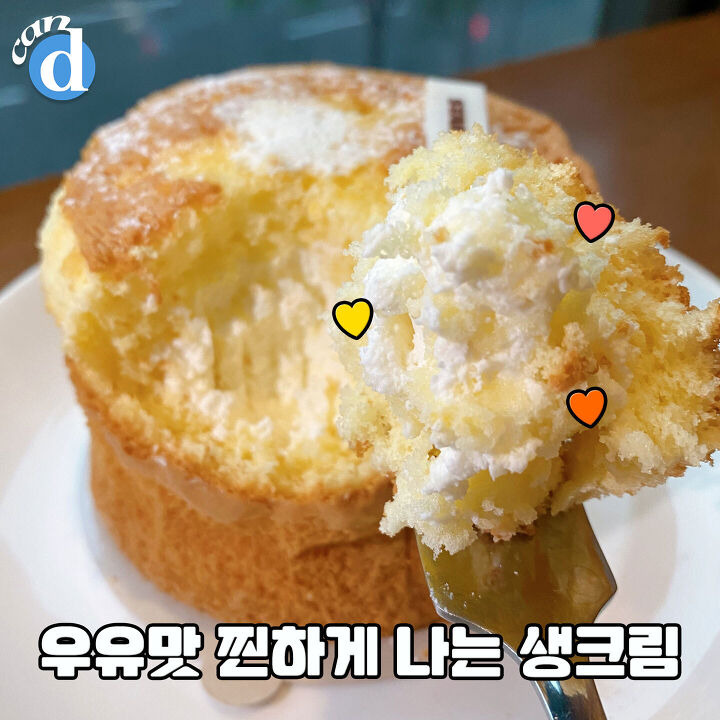 드디어 포크로 케이크 한입해보기! 먹자마자 훅 들어오는 우유맛. 생크림에서 우유맛이 굉장히 찐~하게 나는 편이에요.