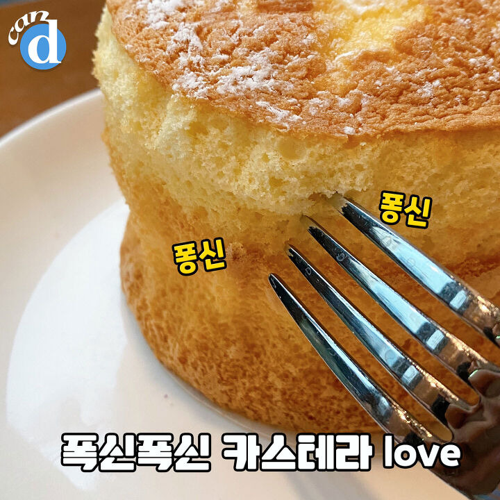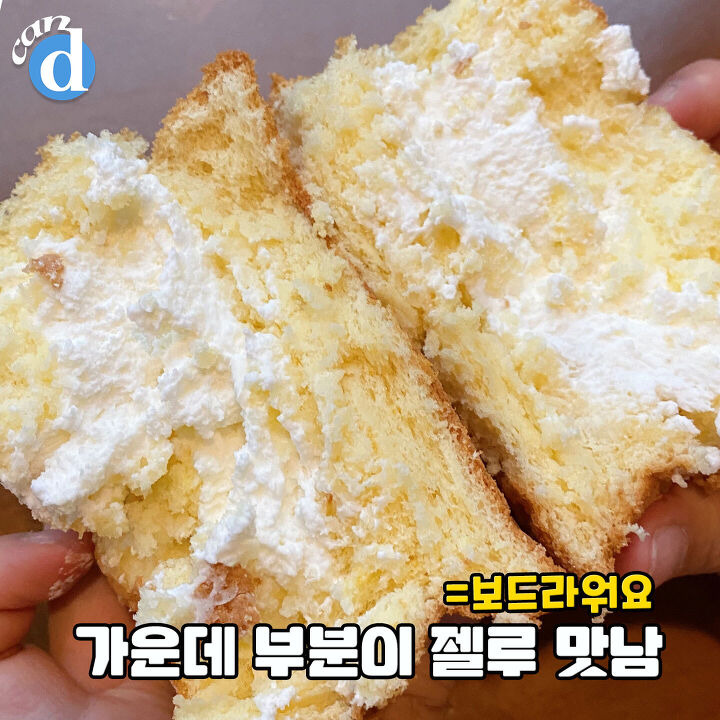 자꾸만 꾹꾹 눌러보고 싶은 카스텔라 재질★ 살짝 눌러보니 폭신폭신한 것이 먹기 전부터 설렘 투척~ 빨리 먹어봐야겠어요!