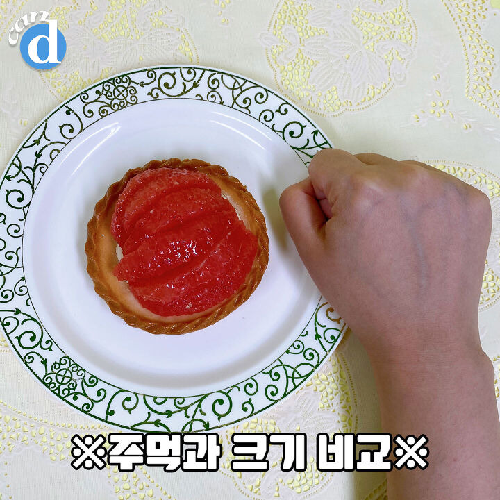 타르트 자체와 주먹을 크기비교해봤어요. 거의 비슷하지만 살짝 작은 정도!