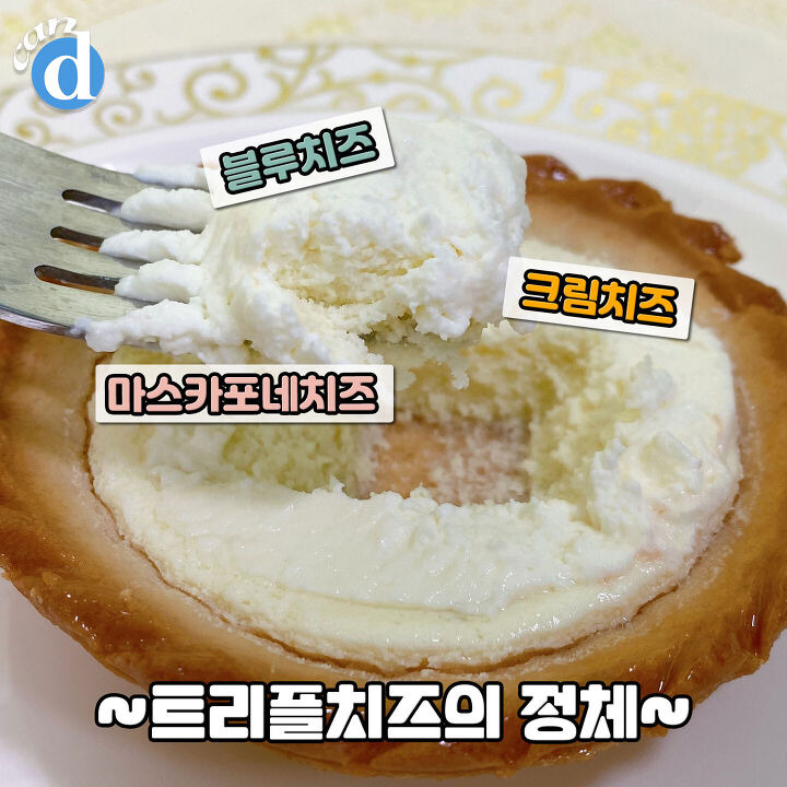 트리플치즈의 정체는 크림치즈, 마스카포네치즈, 블루치즈. 꾸덕꾸덕보다는 몽글몽글 식감의 치즈조합!