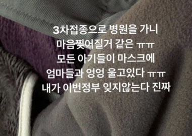 당시 유민주는 "3차 접종으로 병원을 가니 마음 찢어질 거 같다"며 "모든 아기들이 마스크에 엄마들과 엉엉 울고 있다. 내가 이번 정부 잊지 않는다"고 분노를 쏟아낸 바 있습니다.