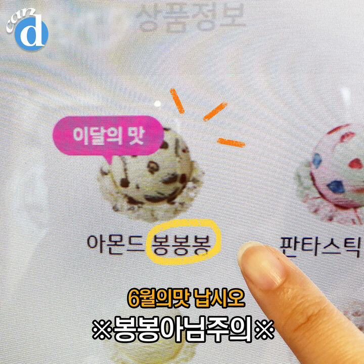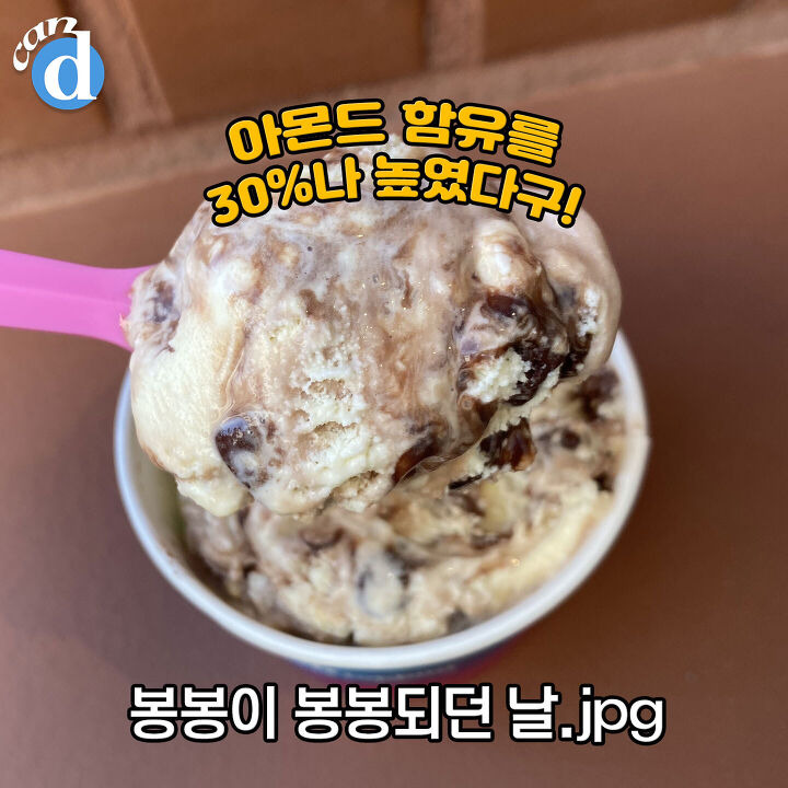 자칫 눈치를 못 챌 수도 있다는 이번 신상. 이름하여 '아몬드 봉봉봉'이에요. 기존 아몬드 봉봉에 '봉' 하나가 더 붙어버렸다는...!