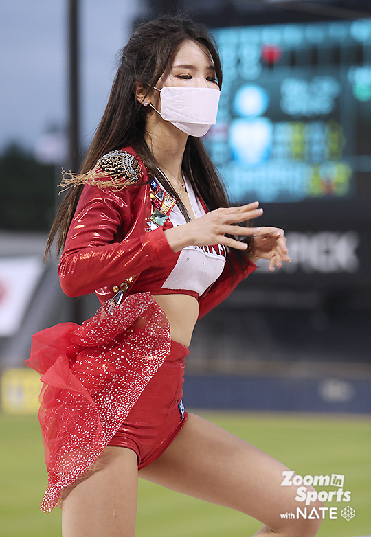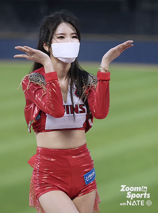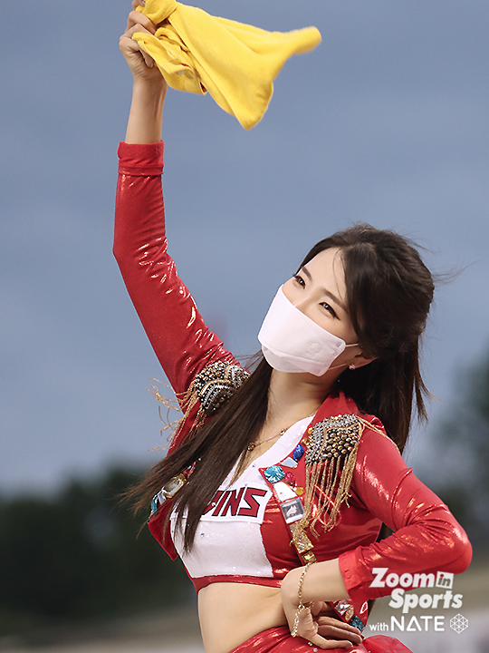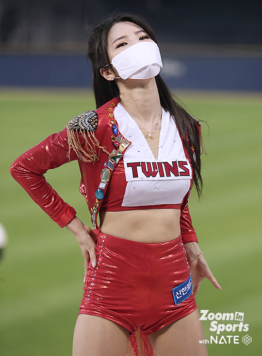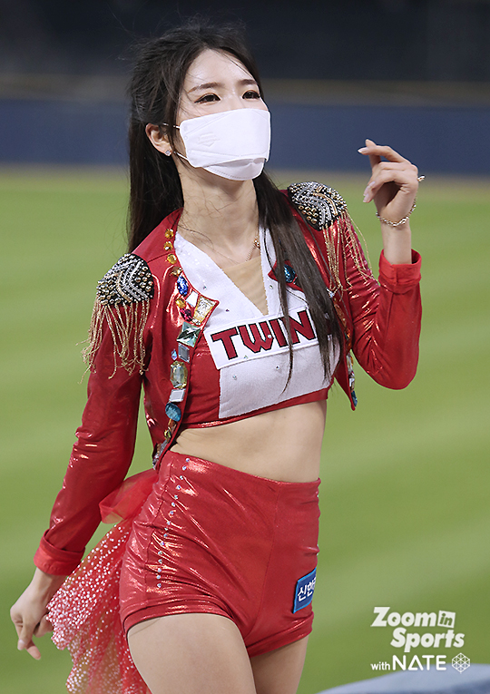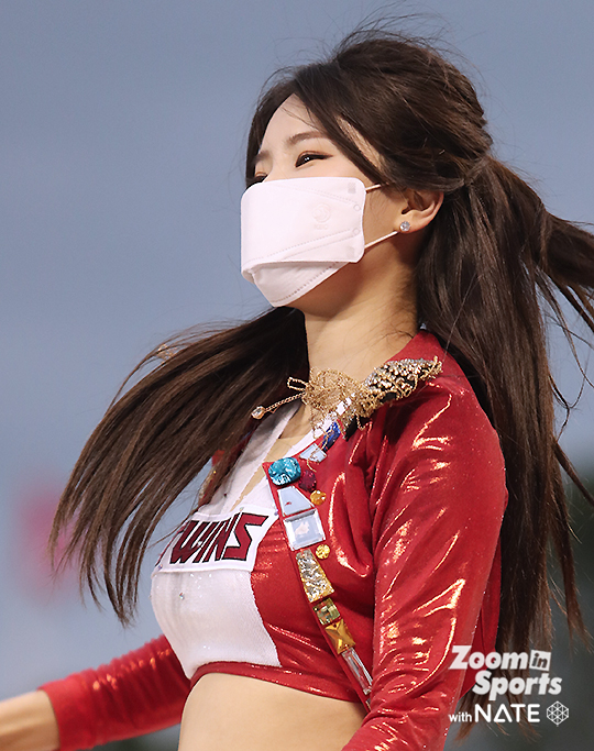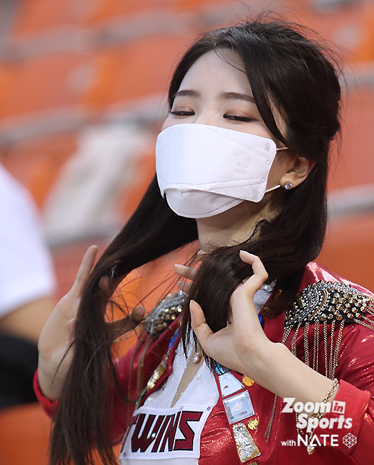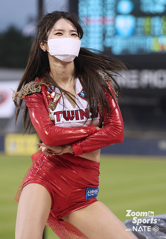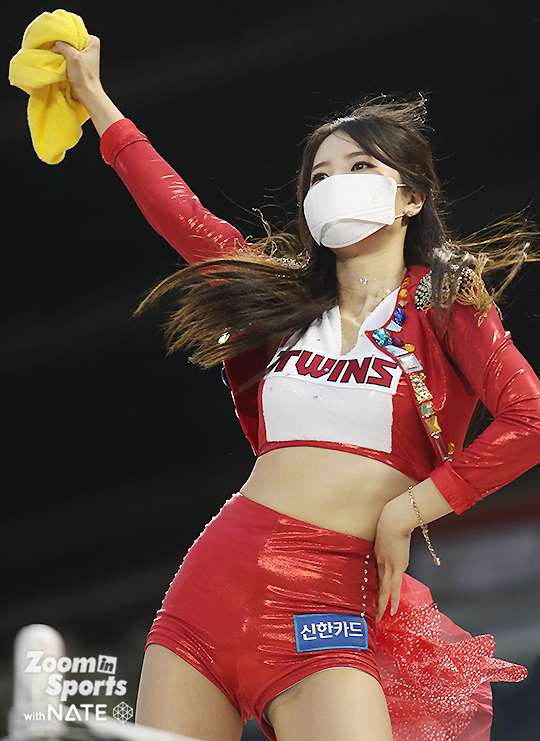 2일 오후, '2020 프로야구' LG 트윈스와 삼성 라이온즈의 잠실이었다. '숨막히는 응원'을 지켜보며 물론, 개인적인 바람이지만 '안무' 때 만이라도 잠시 마스크를 벗었으면 하는 바람이었다. 호흡곤란을 겪으며 연신 땀을 닦아내는 그들을 보는 눈길이 안쓰러웠기 때문. LG 치어리더 윤소은의 마스크 응원은 계속됐다!