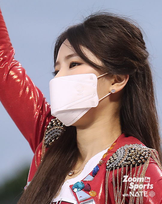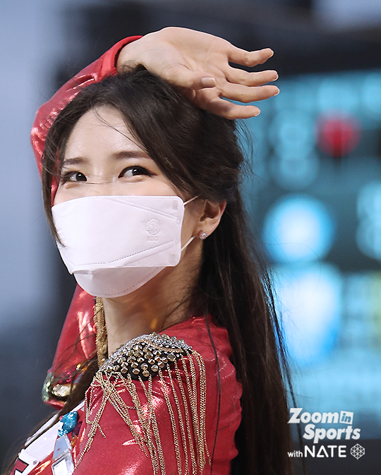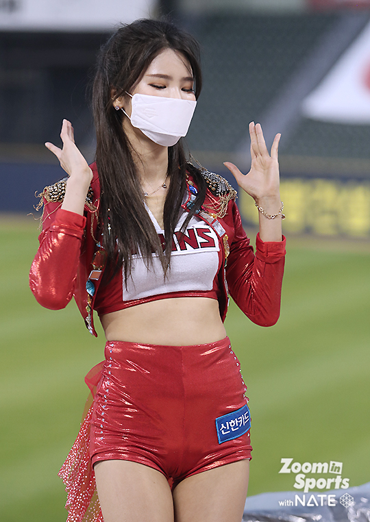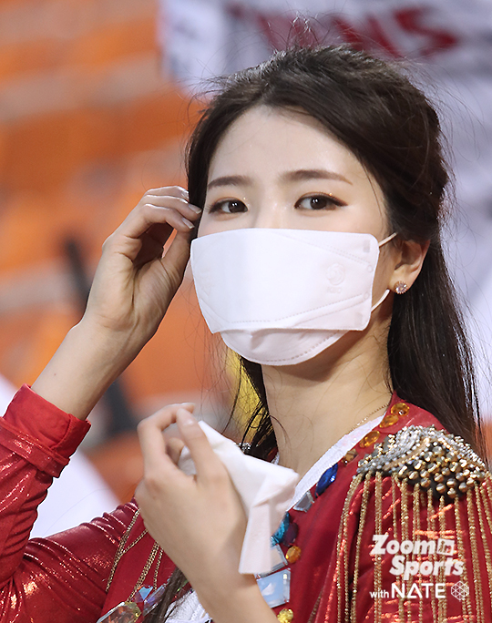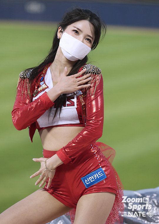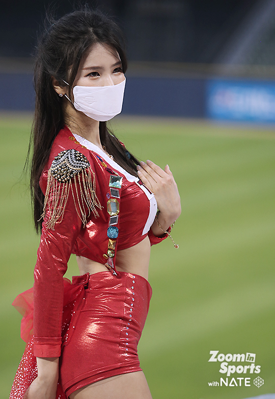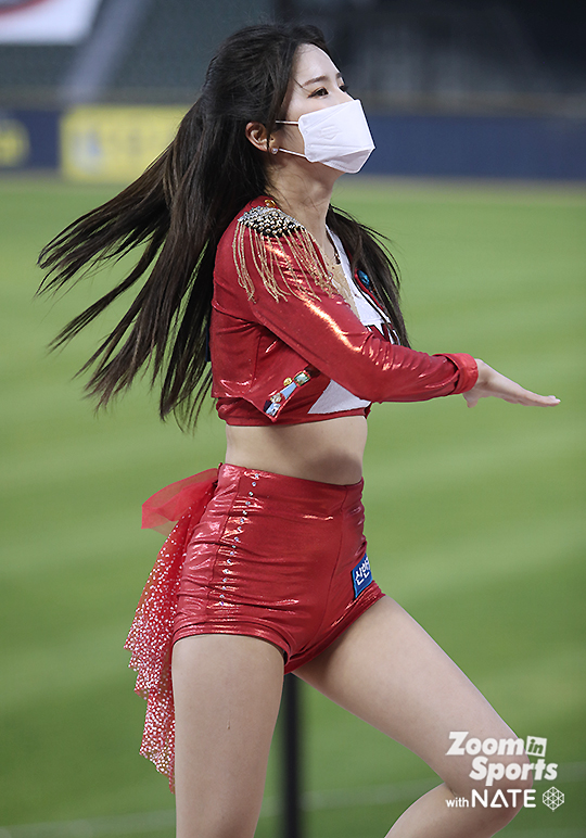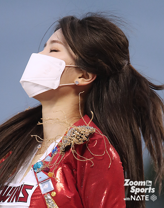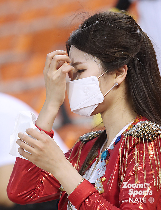 2일 오후, '2020 프로야구' LG 트윈스와 삼성 라이온즈의 잠실이었다. '숨막히는 응원'을 지켜보며 물론, 개인적인 바람이지만 '안무' 때 만이라도 잠시 마스크를 벗었으면 하는 바람이었다. 호흡곤란을 겪으며 연신 땀을 닦아내는 그들을 보는 눈길이 안쓰러웠기 때문. LG 치어리더 윤소은의 마스크 응원은 계속됐다!