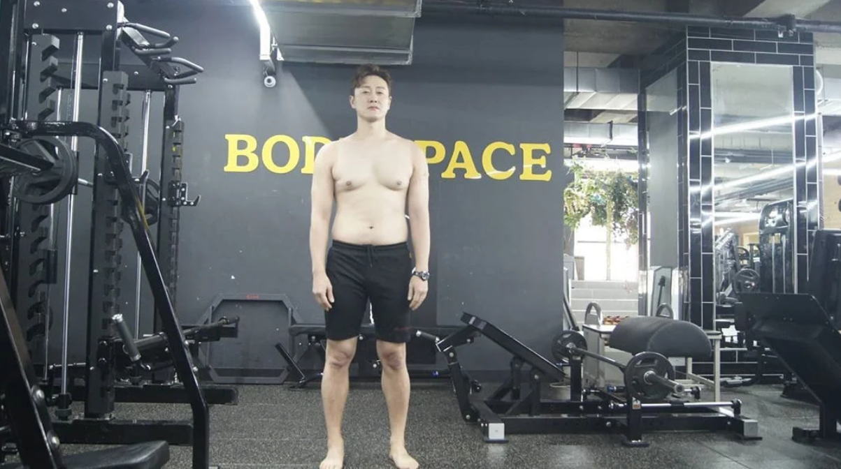 3개월 전의 김원효는 다소 살집이 있는 상태. 뱃살이 접혀 있었습니다. 그러나 17kg 감량 이후는 슬림한 근육 바디를 뽐냈습니다.
