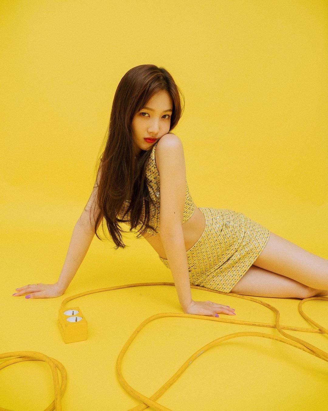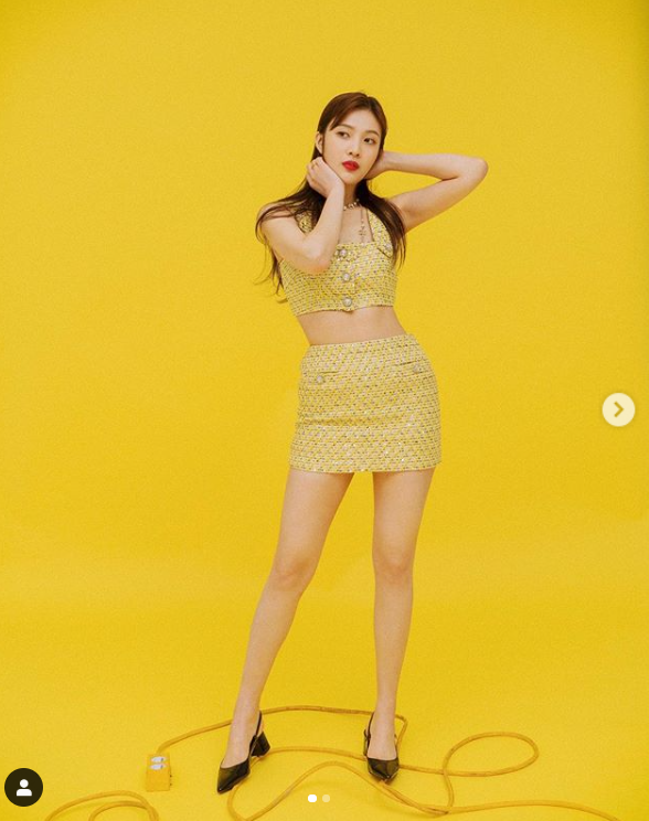 조이는 상큼 섹시한 매력을 발산했습니다. 옐로우 컬러의 트위드 크롭 상의와 미니 스커트를 완벽한 몸매로 소화했고요. 새빨간 립과 고혹적인 미모도 인상적이었습니다.