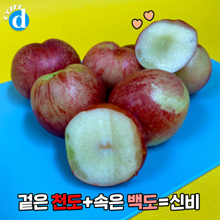 겉은 천도복숭아처럼 빨갛지만, 속은 백도처럼 하얗고 말랑말랑해서 붙여진 이름이래요.