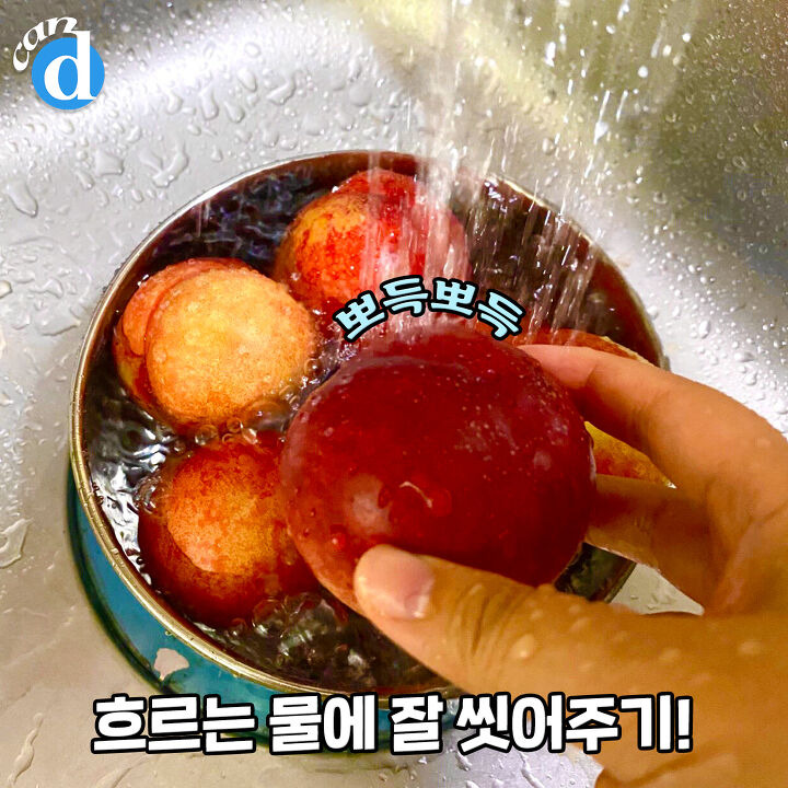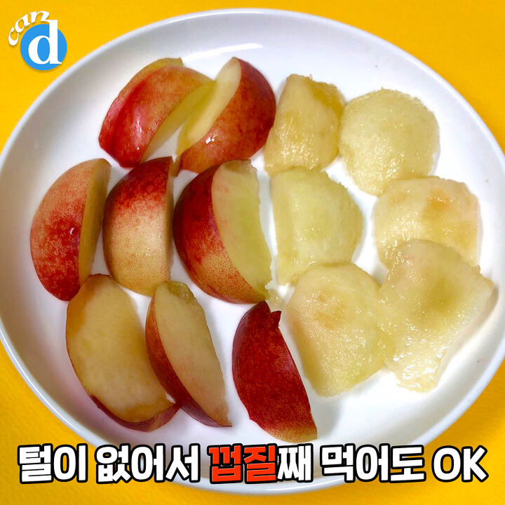 복숭아 잔털 싫다는 분들 있죠? 요건 털이 없어서 뽀득뽀득 씻은 뒤 곧장 입 속으로.