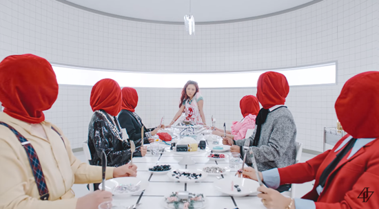 걸크러쉬 매력을 뽐냈다. 화사는 삼각 욕조에서 매혹적인 포즈를 취했다. 중독적인 멜로디가 이어졌다. 화사는 피 묻은 앞치마를 입고 재등장 했다. 손에도 피가 가득했다.