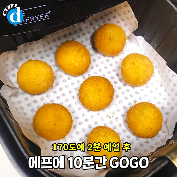 조리법은 치즈볼이랑 동일해요. 170도에 2분간 예열 후, 10분만 구워주면 완성!