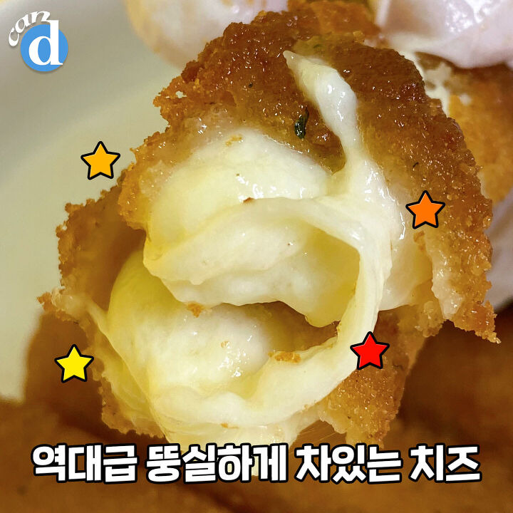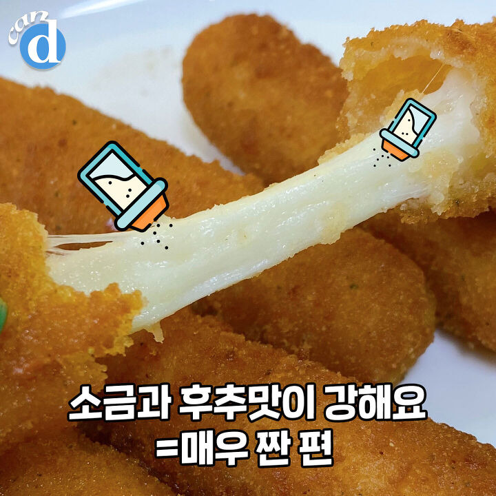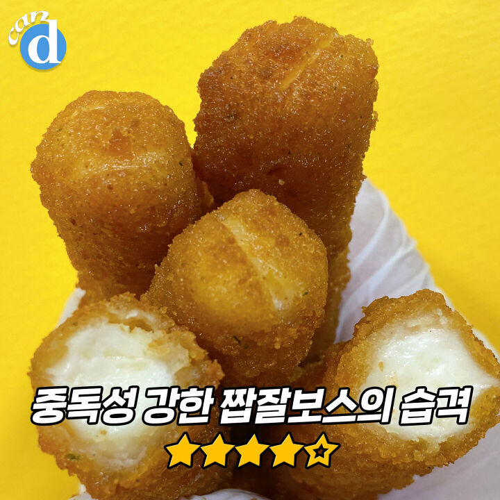 치킨 떠오르는 바삭한 튀김옷에 토실토실 치즈. 여기에 입맛을 두드리는 중독성 강한 짭짤함까지!