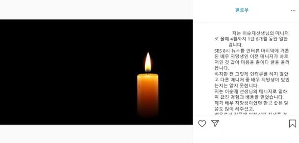 이 가운데 이순재의 전 매니저라고 밝힌 C씨가 등장했다. 그는 30일 자신의 인스타그램에 글을 올렸다.
